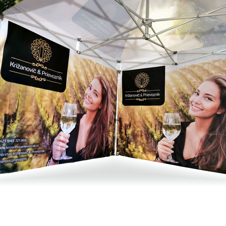 Tällainen tulostus tulee olemaan mainos jokaiseen telttaan, ja se houkuttelee jopa kaikkein vaativimpia asiakkaita. Valmistuksen jälkeen tulostus kestää vuosia.