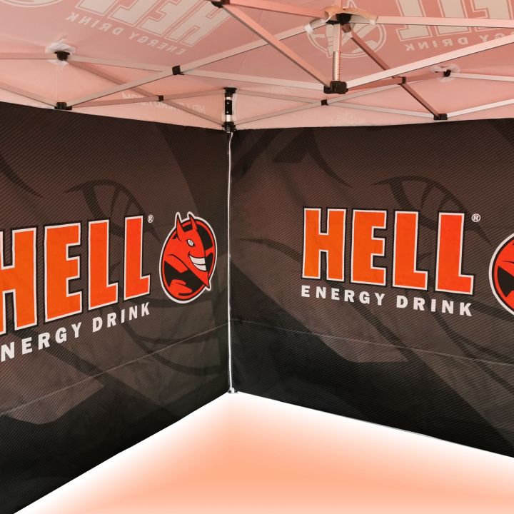 Ei ole väliä, onko kyseessä pieni 2x2 m:n koko tai suuri mainosteltta, joka on 4x8 m, tulostamme siihen värillisiä kuvia, grafiikkaelementtejä tai peitämme koko mainosteltan pinnan valitulla kuvioinnilla.