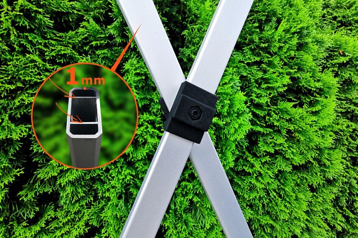 Unohda hauraat teräsputket. Paviljonkimme ydin on kuusikulmaiset (heksagonaaliset) alumiinijalat, jotka tarjoavat huomattavasti suuremman vääntöjäykkyyden kuin tavalliset neliöprofiilit. Anodisoitu alumiini on luonnostaan korroosionkestävä, mikä tarkoittaa, että telttasi näyttää uudelta jopa vuosien ulkokäytön jälkeen. Alumiinin keveyden ansiosta tämä malli on ihanteellinen kumppani myyntiedustajille, urheilujoukkueille ja näytteilleasettajille, jotka arvostavat helppoa käsittelyä ja kuljetusta tavallisen auton tavaratilassa.