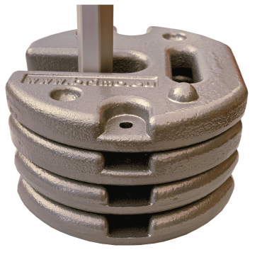 Mainosteltan asianmukainen kiinnitys on tärkeää sen koon ja liikkuvuuden vuoksi. Koville alustoille tarjoamme hiekka- tai vesipainoja sekä teräksisiä painoja vakauttamiseen.