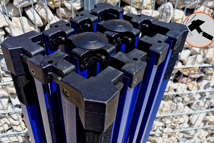 Telttojen pystyttäminen ja purkaminen on helppoa, yhdellä liikkeellä voit säätää rakenteen haluttuun korkeuteen. Katon korkeuden säädön avulla voit säätää katon tarpeidesi mukaan. Teltan hillitty väri sulautuu ympäristöön, ja voit säätää kankaan esimerkiksi tuotteesi brändin mukaan. Kokemuksesta tiedämme, että teltan suunnittelu on yhtä tärkeää kuin sen laatu. Erotumme kilpailijoistamme tummansinisellä rakenteen värillä.