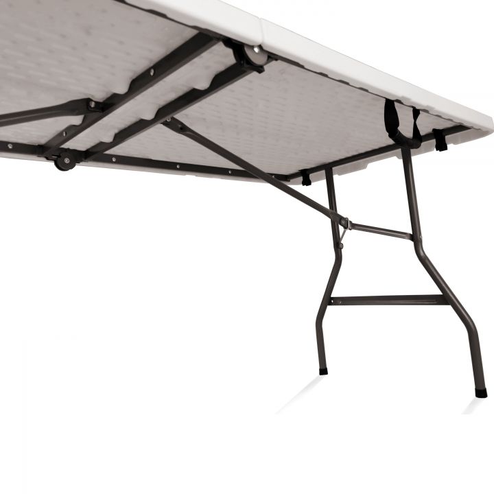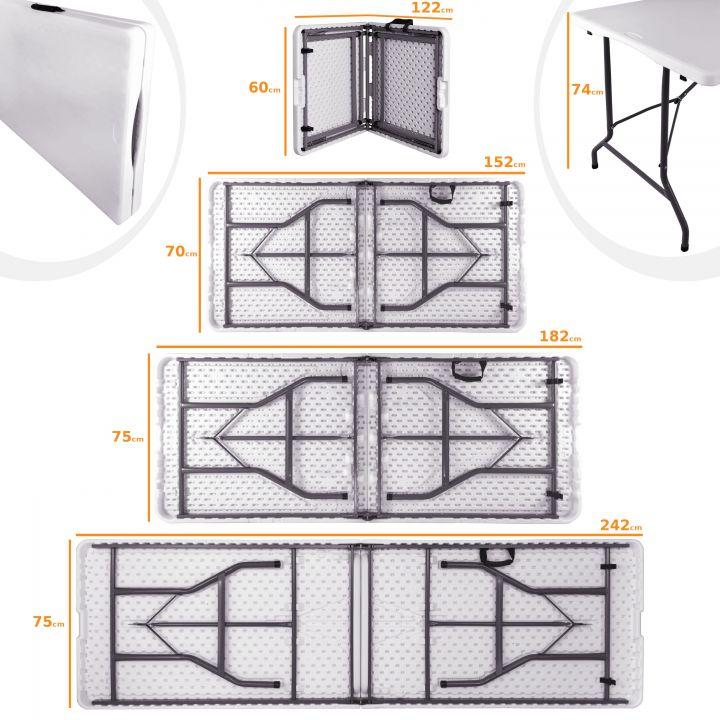 - Sulankstomas stalas sulankstomas per pusę ir nešamas kaip lagaminas, todėl jį lengva transportuoti. Tinka iškyloms arba maisto renginiams lauke.
