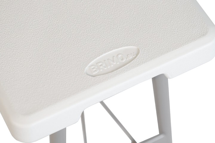 - Muovinen penkki sisältää muovisen istuimen teräsjaloilla, jotka taitettuna piilotetaan muovisen istuimen sisään.