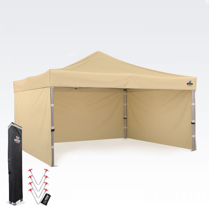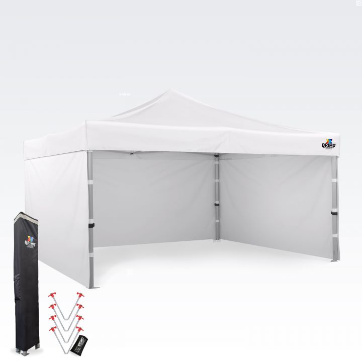 - Kokonaiskorkeus: Vaikuttavan 355–395 cm korkeuden ansiosta telttaasi ei voi olla huomaamatta edes kaukaa. Tämä takaa esityksesi ja logosi erinomaisen näkyvyyden jokaisessa tapahtumassa.