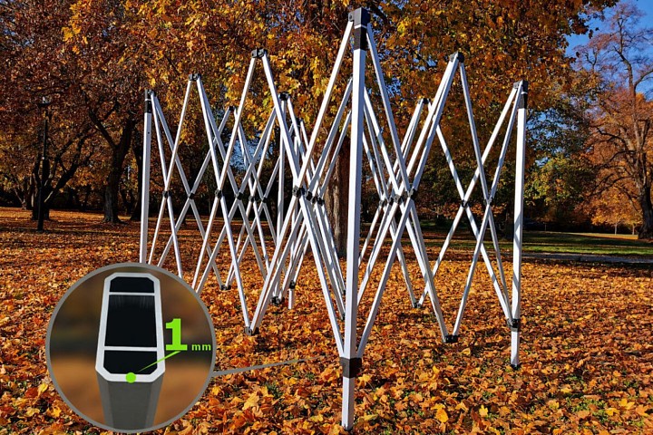 Yleisimmin käytetty materiaali on alumiini. Sillä on uskomattoman hyvät ominaisuudet, kevyt mutta erittäin kestävä ja luotettava. Kevyttä painoa arvostat, jos myyt usein teltan alla ja sinun täytyy siirtää sitä. Teltta pystytetään ja puretaan muutamassa sekunnissa.