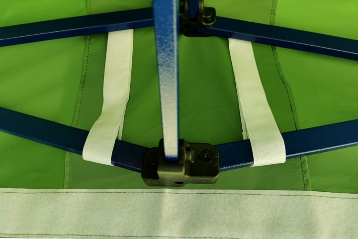 Rakenteen väri on kuninkaallinen sininen. Tämä väri antaa teltalle eksklusiivisen ilmeen. Se eroaa kilpailijoista, se on jotain uutta markkinoilla, jotain mitä kaikki haluavat. Uskomme, että jokainen yrittäjä haluaa erottua joukosta, ja siksi olemme lisänneet valikoimaamme tämän eksklusiivisen teltan, jossa on epätavallinen rakenneväri.
