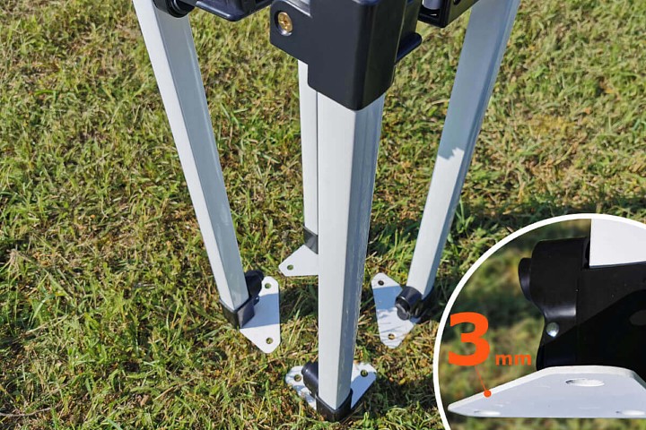 Teräsrunko on valmistettu paksuista norsunluunvärisistä profiileista. Erikoisjauhemaali suojaa metallia korroosiolta. Pinta kestää naarmuuntumista. Jokainen kankaan väri sopii hyvin yhteen rungon värin kanssa. Telttoja on saatavilla seitsemässä värissä. Materiaalin laatu on tavanomaista korkeampi.