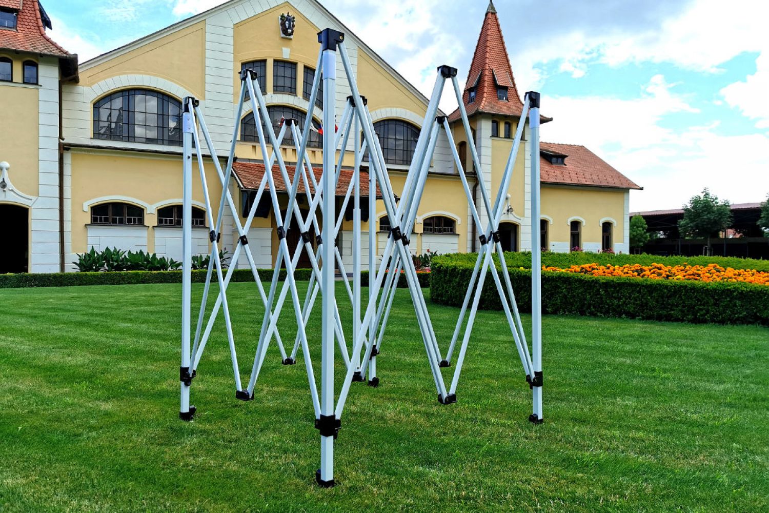 Näyttelyt, markkinat ja messut yhdistää yksi asia: upea tunnelma. Juhlien teltat 3x4,5 m ovat ihanteellisia viihtyisän suojan luomiseen. Teltat eivät voi puuttua yhdeltäkään onnistuneelta tapahtumalta. Huonolla säällä ne suojaavat sinua ja tarjottuja tuotteita. Tiedämme, kuinka aikaa vievää on myyntialueen järjestäminen, siksi olemme valmistaneet teltan, joka suojaa kaikki ponnistelusi. Katto on UV-säteilyä kestävä.