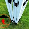 - Super-teräsmalli, jota voidaan käyttää tuulessa jopa 50 km/h. Jaloissa reiät maahan kiinnittämistä varten telttanaulojen avulla – ilmaiseksi!