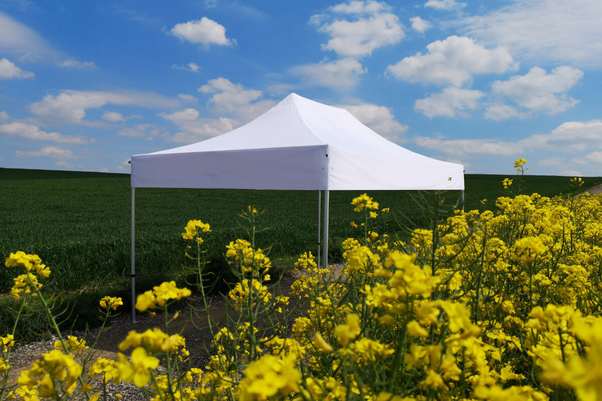Kankaan laatu on ratkaisevaa telttaa valittaessa. EXCLUSIVE-mallimme käyttää korkealaatuista polyesterikangasta, jossa on tarkka viimeistely. Jokainen sauma on paitsi kaksoisommeltu, myös tiivistetty erityisellä lämpöteipillä, mikä takaa täydellisen vedenpitävyyden jopa rankkasateella. Materiaalissa on myös UV-suojakerroin, joka suojaa paitsi sinua, myös tuotteitasi haalistumiselta. Värit pysyvät kirkkaina ja materiaali joustavana jopa pitkäaikaisen auringonpaisteen jälkeen.