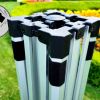 - Tuulenkestävyys: Exclusive-alumiinimalli kestää tuulta jopa 60 km/h asti. Jaloissa on valmiit reiät tukevaa kiinnitystä varten. Saat teltan mukana kiinnityskiilat täysin ilmaiseksi maksimaalisen turvallisuutesi takaamiseksi.