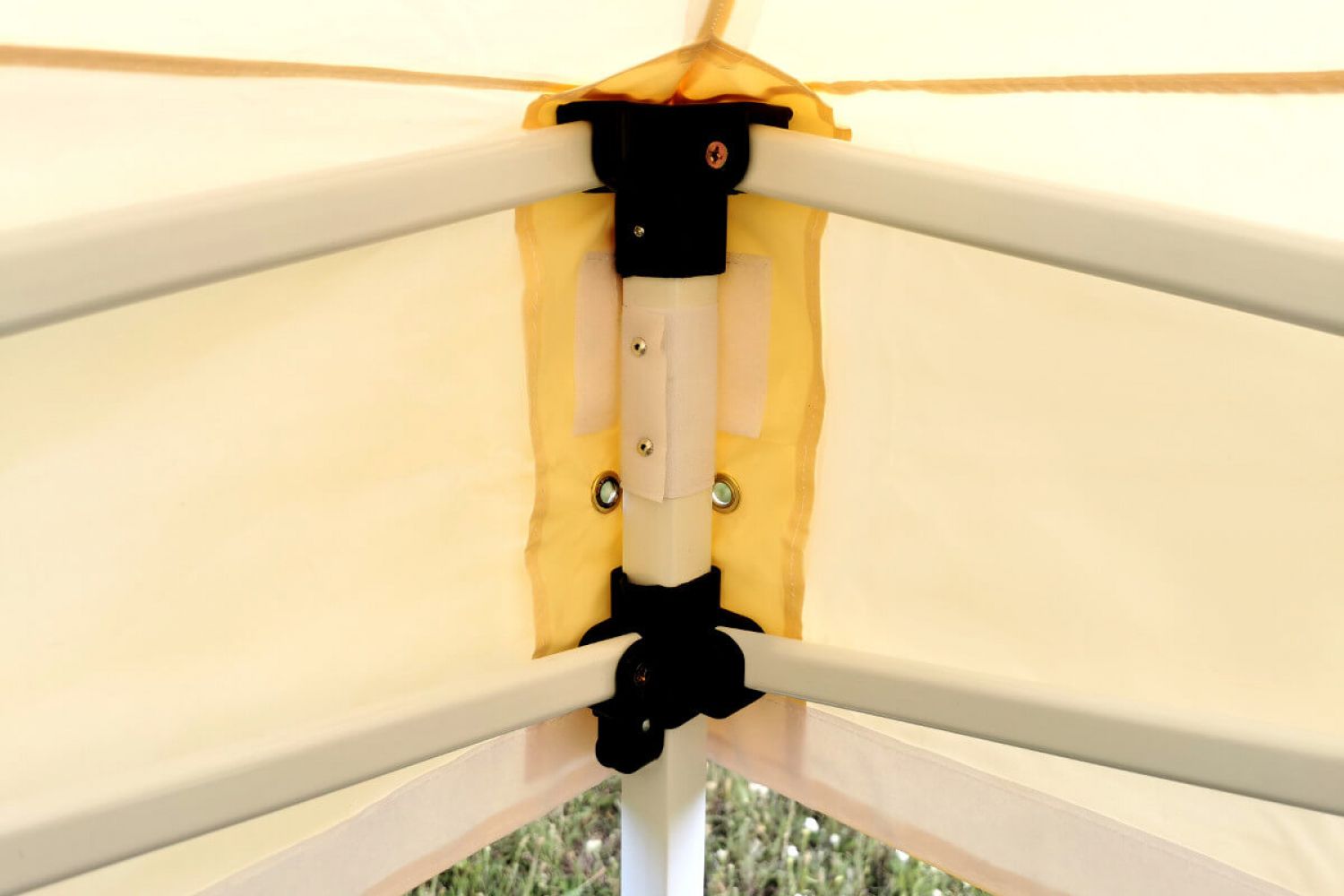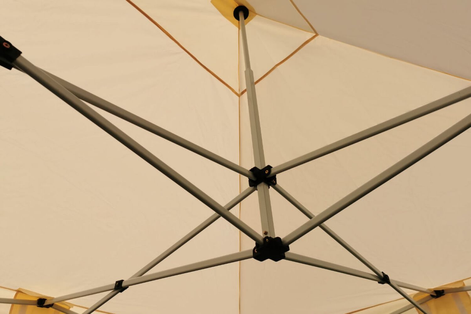 Mustat liitososat ja norsunluunvärinen runko ovat tyylikkäitä ja sopivat mihin tahansa kankaan väriin. Paketti sisältää katon valitsemassasi värissä, rungon, kiilat ja suojapussin teltalle. Saatavilla on seitsemän värivaihtoehtoa. Tarjoamme myös laajan valikoiman lisätarvikkeita – LED-valot ovat suosittuja ostajien keskuudessa, ja niillä tuotteet saadaan valaistua ammattimaisesti.