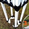 - Super-teräsmalli, jota voidaan käyttää tuulessa jopa 50 km/h. Jaloissa reiät maahan kiinnittämistä varten telttanaulojen avulla – ilmaiseksi!